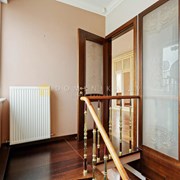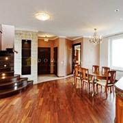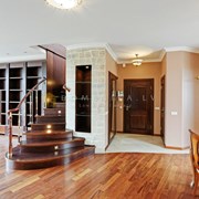 Вся квартира спроектирована в классическом стиле, продуманна и функциональна. Две большие спальни с балконом и террасой с красивыми видами на Ригу, кабинет, столовая, просторная светлая гостиная с камином, витринными окнами с видом на парк. Отдельно кухня. Качественная сантехника в 3-х больших санузлах (два при спальнях с душевыми и ванными), специальная гардеробная комната, багажная комната, хозяйственная кладовая. Вся квартира оснащена кондиционерами, полы и лестница из натурального паркета красного дерева, потолки 3.30 м, в столовой стильная итальянская мебель, эксклюзивное освещение, современное и качественное оснащение ванных (в том числе подогреваемые полы), дорогие под заказ двери красного дерева со стеклом.